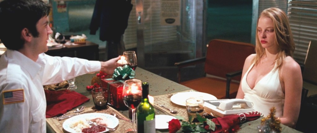 Workaholic business executive Angela is drugged and kidnapped from within the parking structure of her office building as she is headed to her family’s holiday party. She wakes up to an entirely different party, not dressed in her work clothes, and ankle-cuffed to a table. Angela is face to face with her kidnapper Thomas, the building’s attractive yet unhinged security guard, who has taken the liberty of dressing her for an intimate Christmas Eve dinner for two while unconscious.