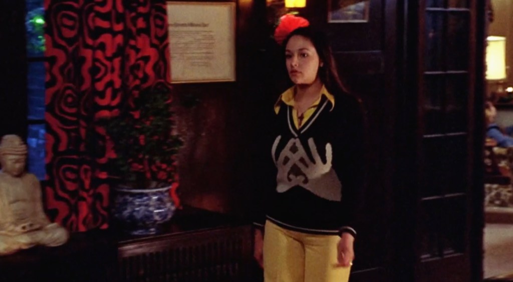 Oh come let us adore Fear Fashion’s #1 Christmas horror party look: sorority girl Jess’ black and white “hands” sweater from BLACK CHRISTMAS ‘74.