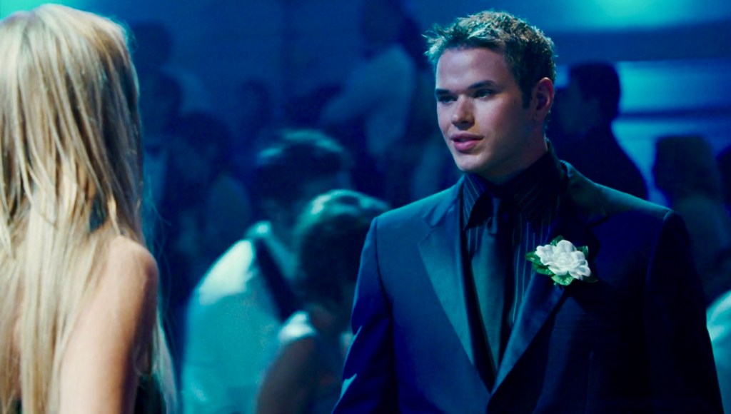 Best dressed guy. Prom King contender Rick (Kellan Lutz) is the male MVP of the evening. He spices up his black tie look with a pin-striped dress shirt, showing more character and personality than his date, the dour Crissy Lynn.