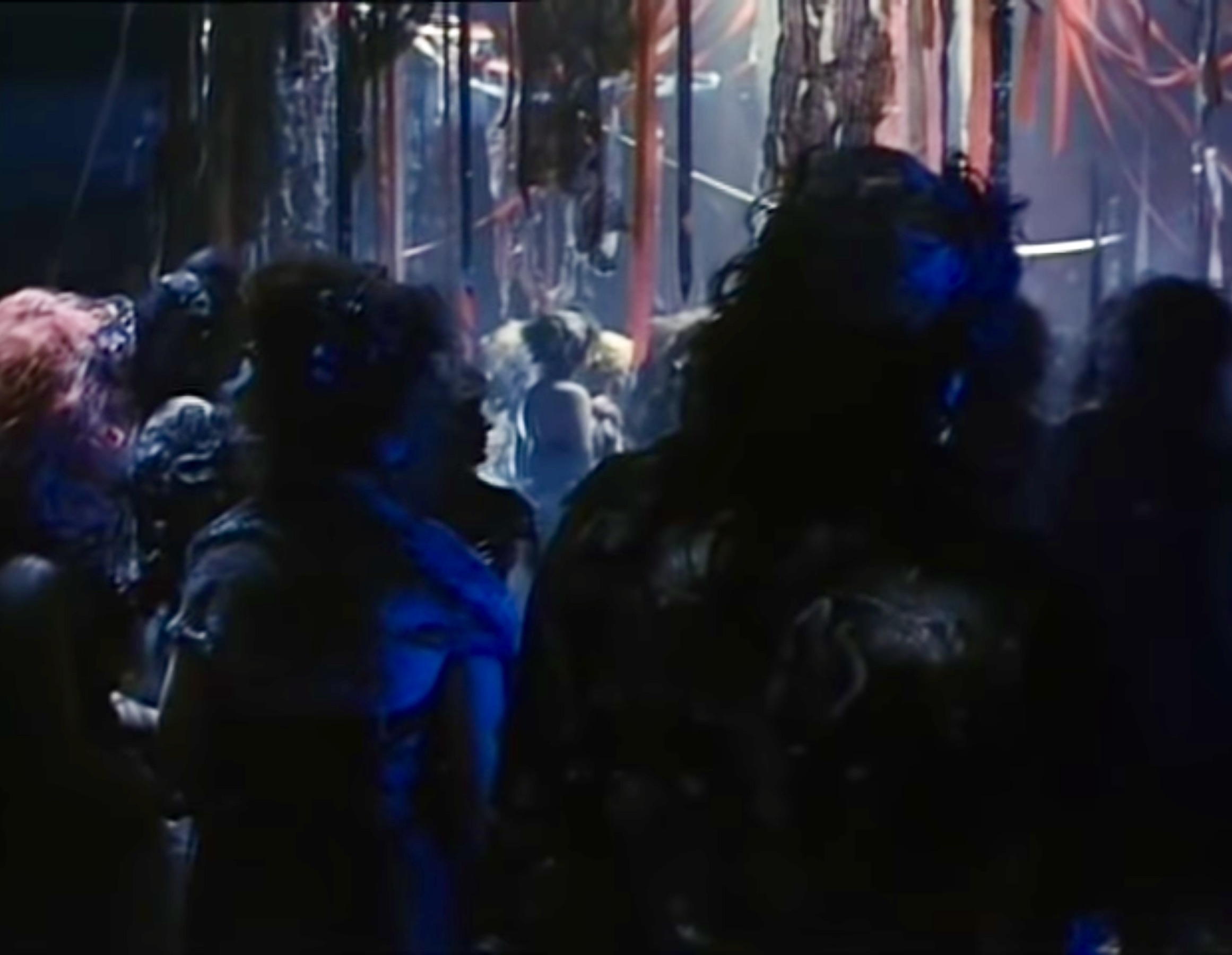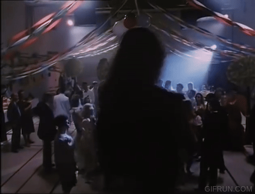 Regular prom and “Dark Prom”. What I love the most about PROM NIGHT III is that two proms take place simultaneously; a real-world prom and a zombie prom in Hell. These scenes occur during the final act, in the Hamilton High gymnasium. The decor is nothing special -streamers & banners-, but the vibe is the most fun out of all the Prom Night movies. Everyone is dancing and having a great time. For entertainment, there’s a hair-flipping rock singer fronting a new-wave-looking band, like Duran Duran with Sebastian Bach at the helm.