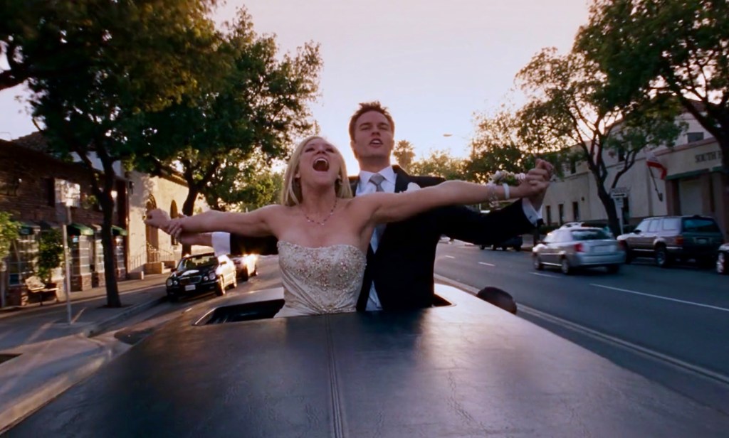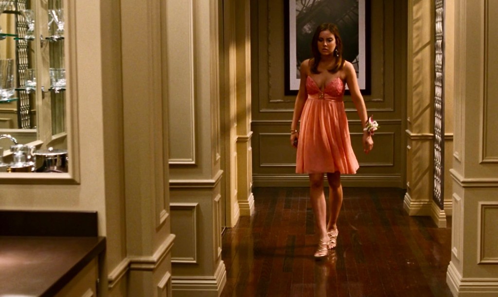 Despite many people’s opinions, I don’t consider PROM NIGHT 2008 the poorest movie in the franchise or even the worst movie ever. The plot may be weak, but the promwear definitely doesn’t suck. In addition to having the most attractive group of prom-goers in the series and the magnificent art deco Park Plaza Hotel as a prom venue, PROM NIGHT 2008 is the most beautifully costumed in the series. Therefore, it ranks at the top of my fashion ranking list. Elizabeth Paolo’s designs reflect aughts fashion trends that make memorable style statements throughout the movie. The designer deserves praise for creating these beautiful, stylish gowns and dapper tuxes.