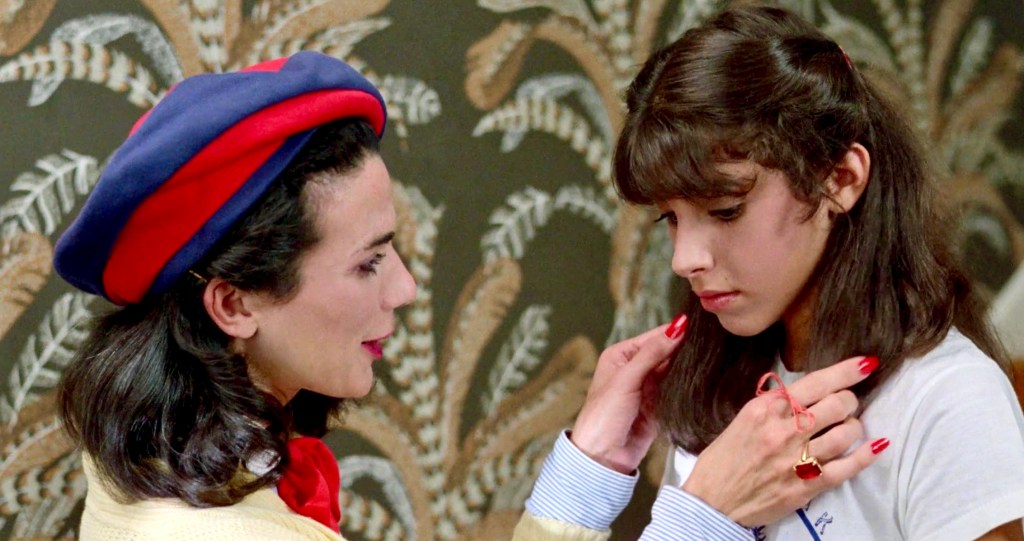 In SLEEPAWAY CAMP, crop tops and short shorts dominate the fashion scene. However, I’m most interested in Aunt Martha’s style. She both fascinated and unnerved me with her off-the-wall personality and that wacky outfit she wears when she sends her son Billy and niece Angela off to summer camp.