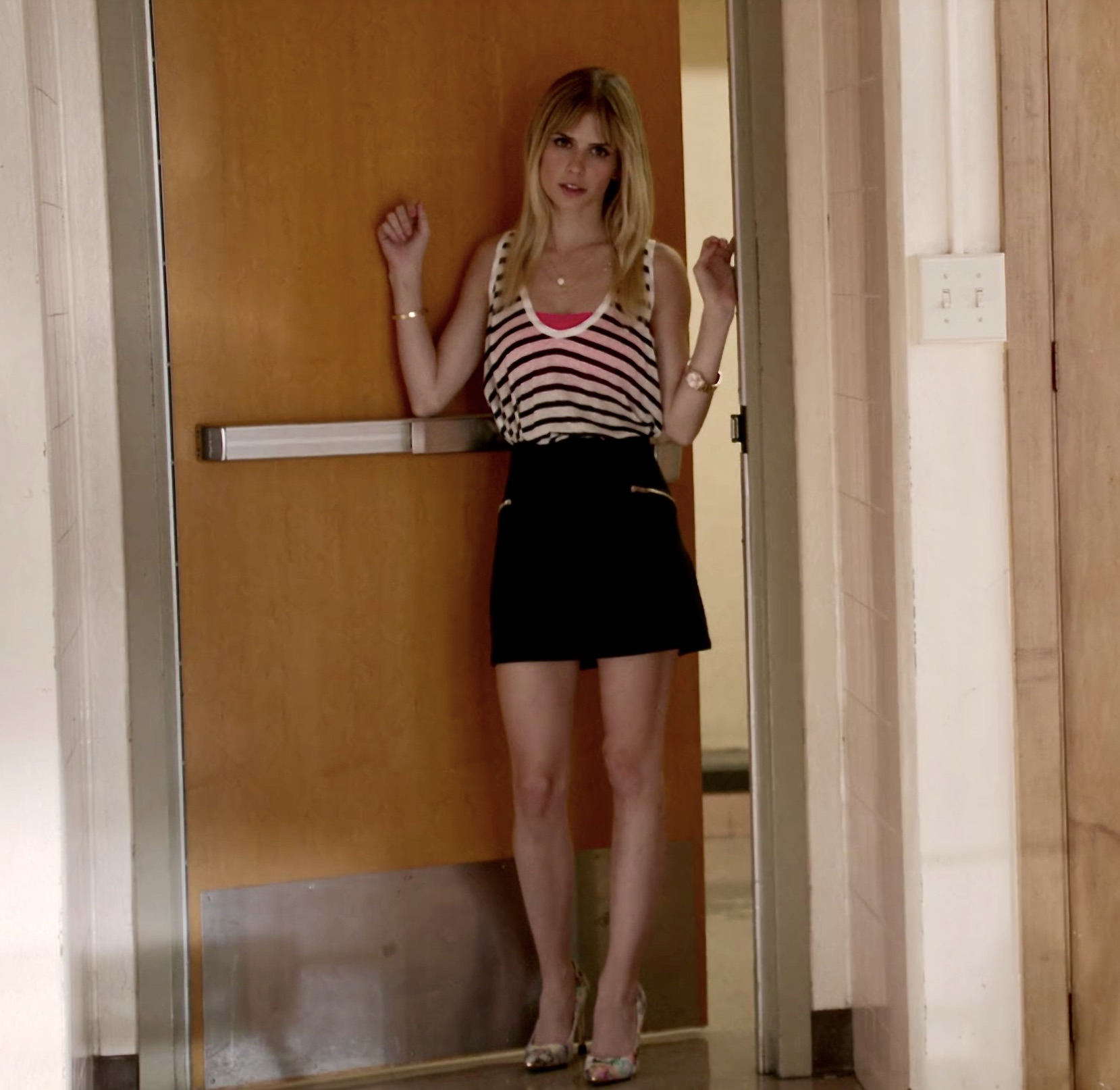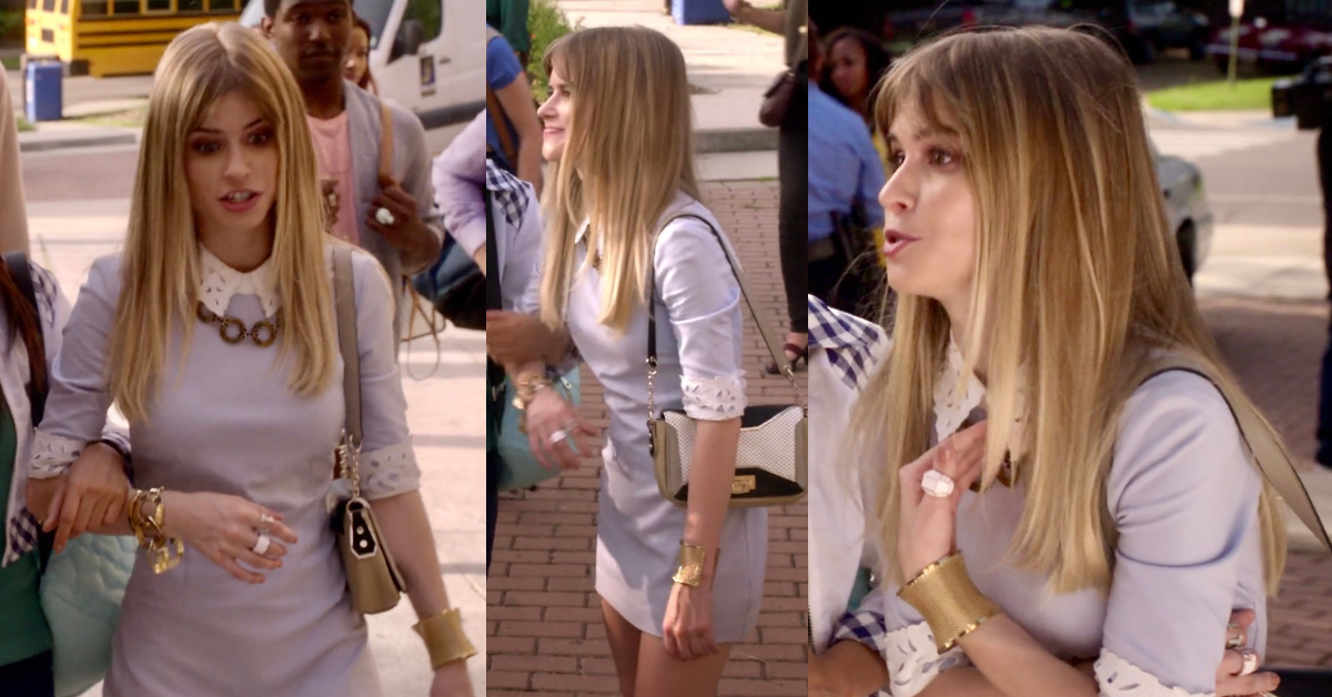 The high school style scene can be divided into two camps: fashion for the masses and fashion for the wealthy, like SCREAM: THE TV SERIES’ Brooke Maddox. Brooke appears in seasons 1 & 2 of the episodic horror show, eventually becoming one of the infamous “Lakewood Six”. As expected, her wardrobe looks costly and suits the stereotype of a horror movie “rich bitch” character. In other words, it’s the type of wardrobe a girl who drives a Porsche Cayenne would wear to school.